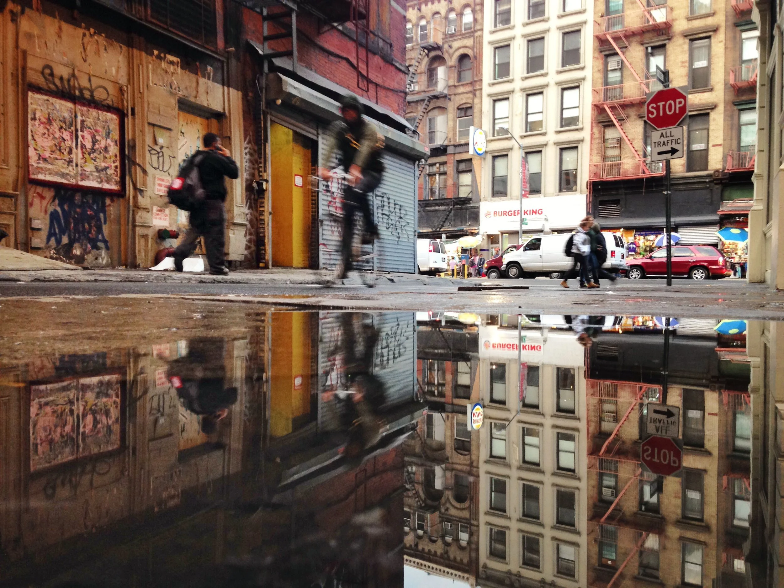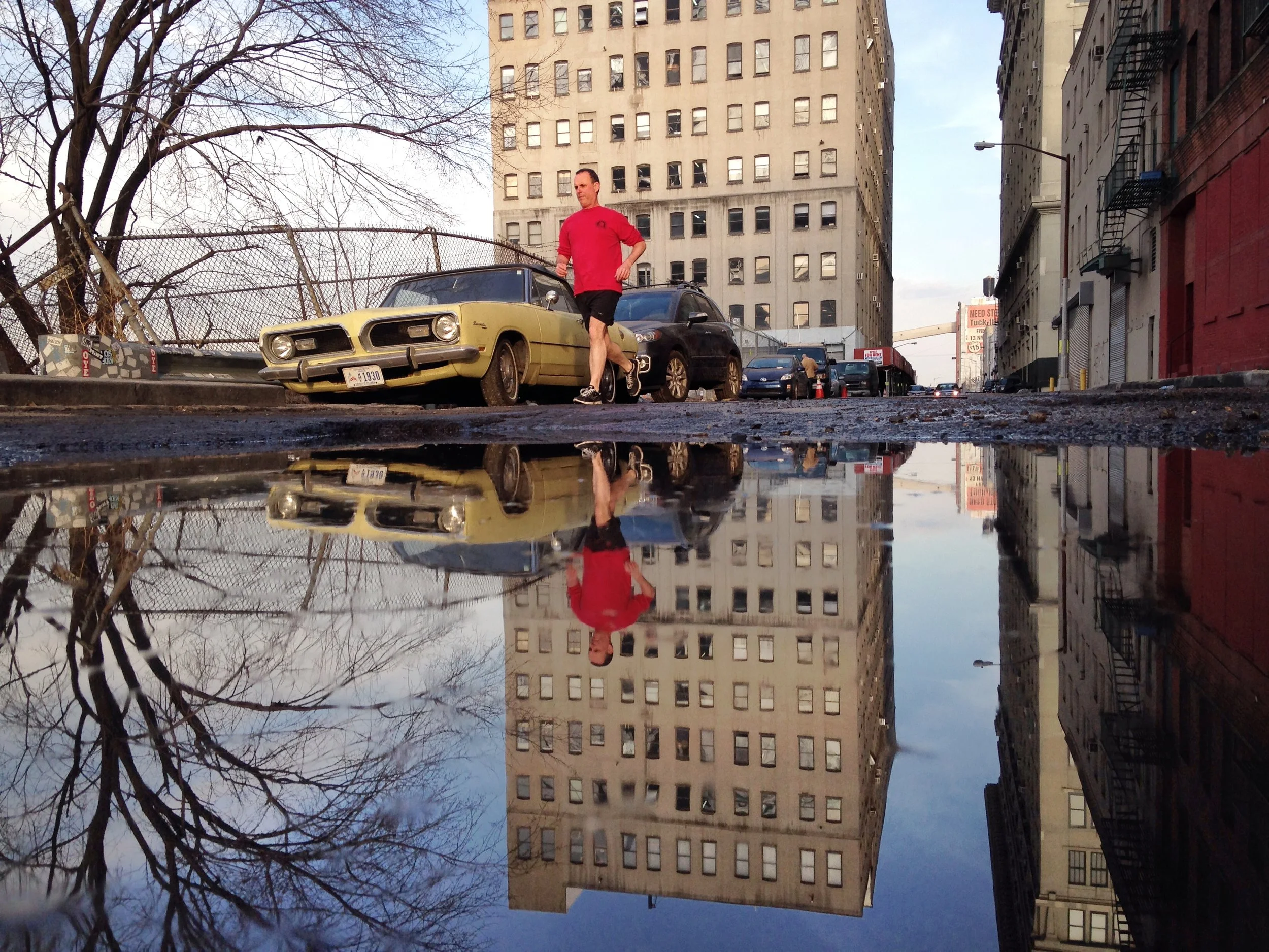 I’ve always been drawn to reflections in puddles and the hoods of cars, and the advent of cameraphones allowed me to put the lens much closer than you could get with a traditional camera.